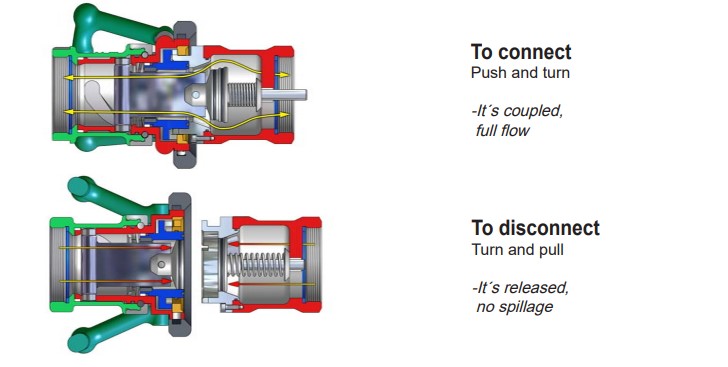 disconnect hoses and pipelines under pressure, quickly without spillage and